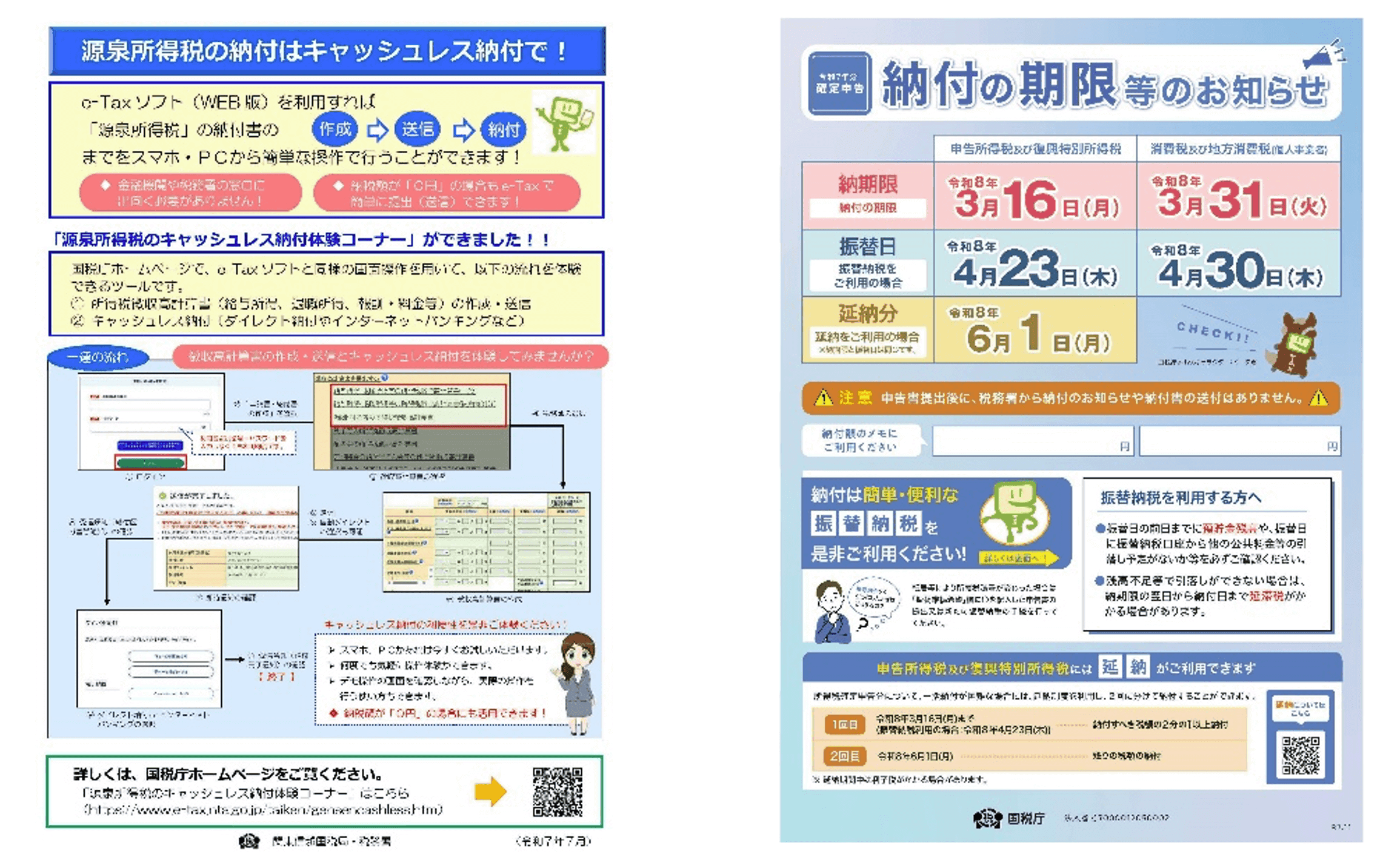 佐野市の「正しい申告と納税推進都市協議会」(藤波一博会長)、佐野税務署管内納税貯蓄組合連合会(福田紳一会長)及び佐野税務署(高橋敏道署長)は、今回初めて、キャッシュレス納付広報用パネル(B2サイズ)及びポスター(A3サイズ)各2種類を作成した。