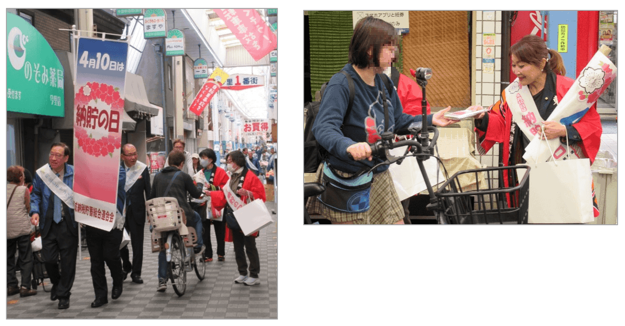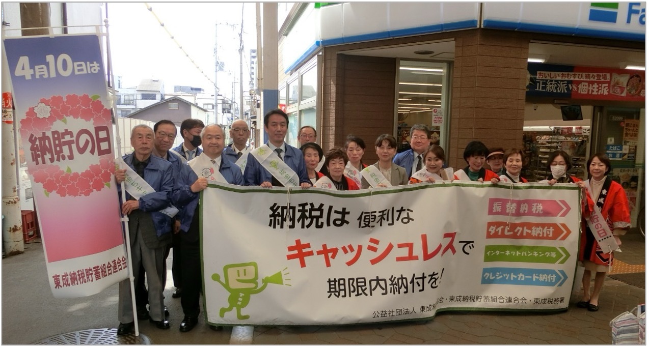 大阪府連・東成納税貯蓄組合連合会(網野芳生会長)は、「4月10日は『納貯の日』キャンペーン」を、4月11日に東成しんみちロード商店街で開催した。
