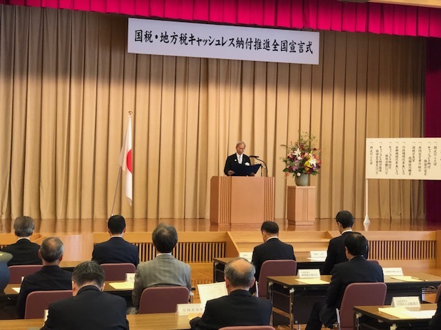 キャッシュレス納付推進宣言式は、各地の地方自治体、国税局、税務署単位で開催されているが、この宣言式では、総務省、国税庁、日本銀行をはじめとする行政機関・関係団体23団体が共同宣言を行い、全国的なキャッシュレス納付の機運を高めるために開催されたものである。