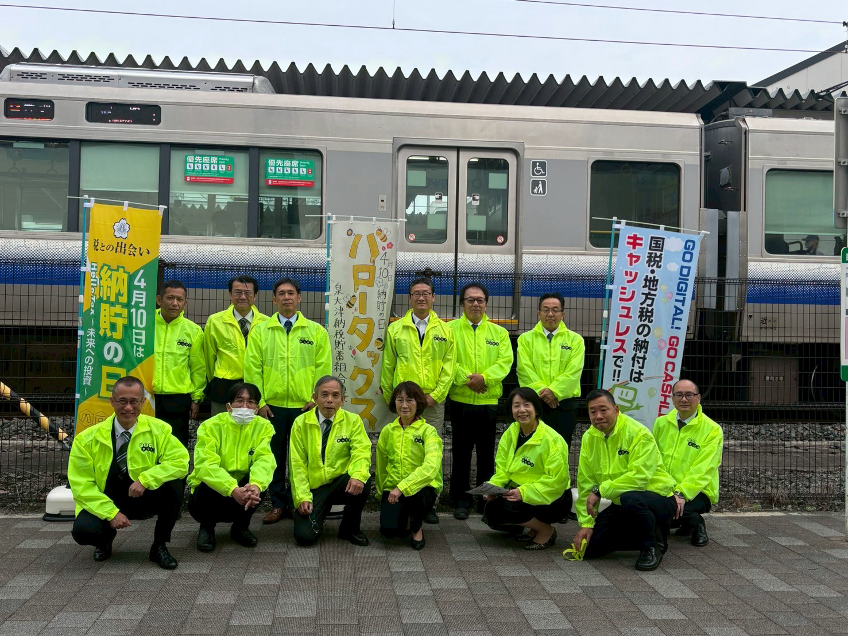 泉大津納税貯蓄組合連合会においては、4月10日の「納貯の日」に、泉大津税務署、大阪府泉北府税事務所及び和泉市と連携して、納税貯蓄組合の活動及びキャッシュレス納付を広く一般の方々にPRする街頭活動を下記のとおり実施した。