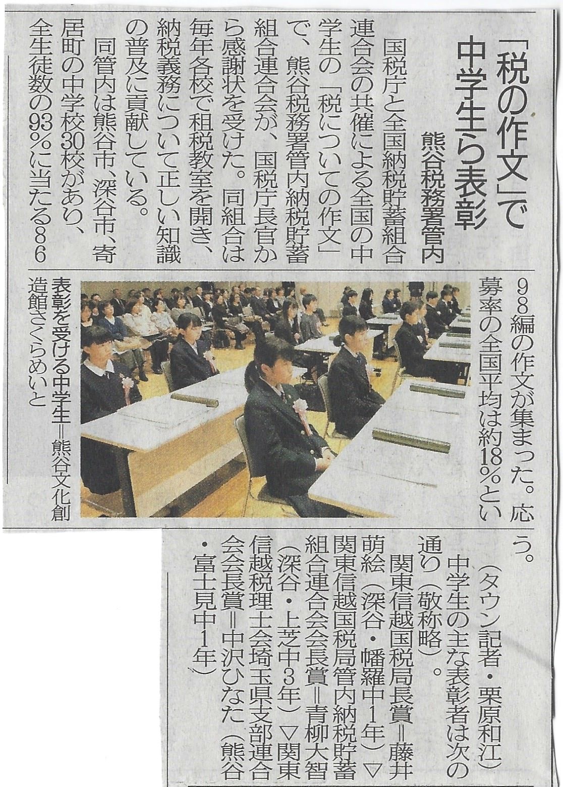 所沢税務署管内納税貯蓄組合連合会(吉島一良会長)傘下の各市組合は11月中に、「税の作文」表彰式や朗読会を実施した。