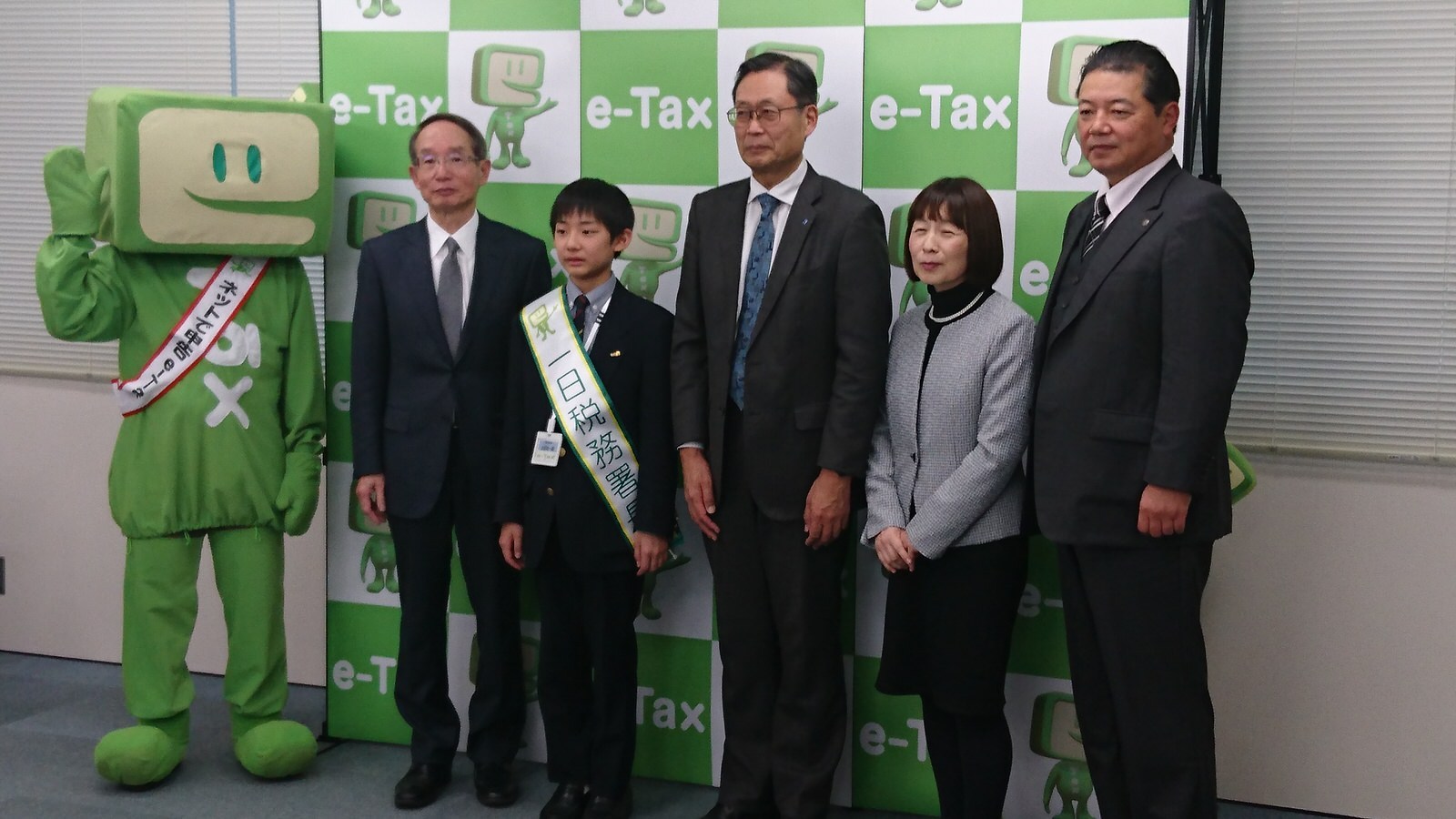 文部科学大臣賞の上田壮一郎さんが一日税務署長に