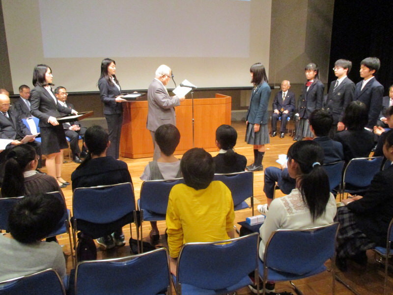 なお、入間市長賞等の受賞者へは、市長及び教育長が学校へ行き、全校生徒の前で表彰した。